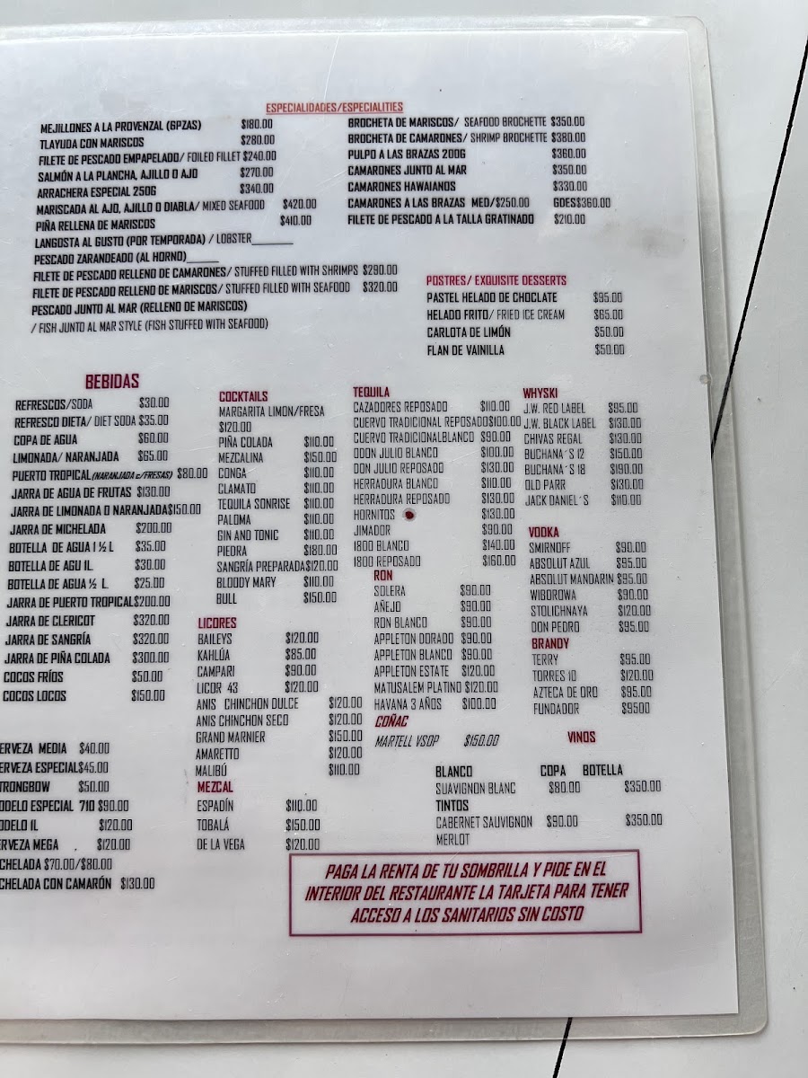 Restaurante Junto al Mar Menu